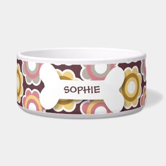 Personalized retro flowers dog bone pet food bowl dog water bowl