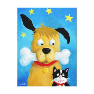 Dog with Bone & Cat Canvas Painting Gallery Wrap Canvas