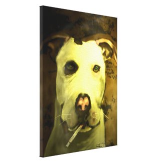 Artist's name is Stevn Dutton. he says he creates fun and creative things to make our life more special than it already is.Even if I don't smoke and don't want you to start, I found this pitbull canvas pretty good!What do you think? I know, I know - you should not harm animals!But this pitbull smoker is fiction! And looks great!