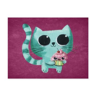 Cute Kitty Cat with Kawaii Cupcake Postcard